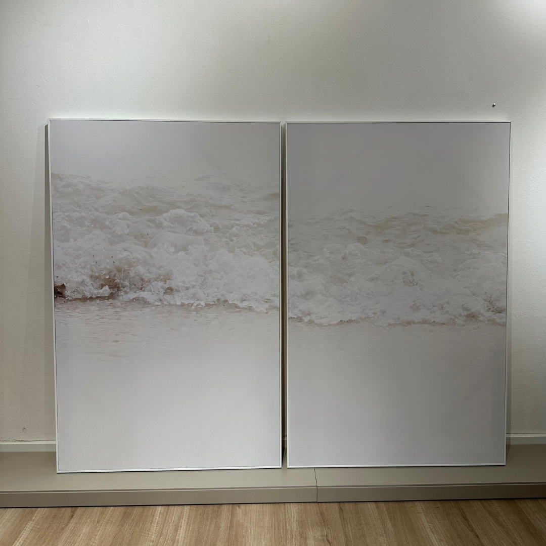 Conjunto com 2 quadros decorativos Mar. Medida 0,90x1,40cm cada Canvas com moldura filete branca.
