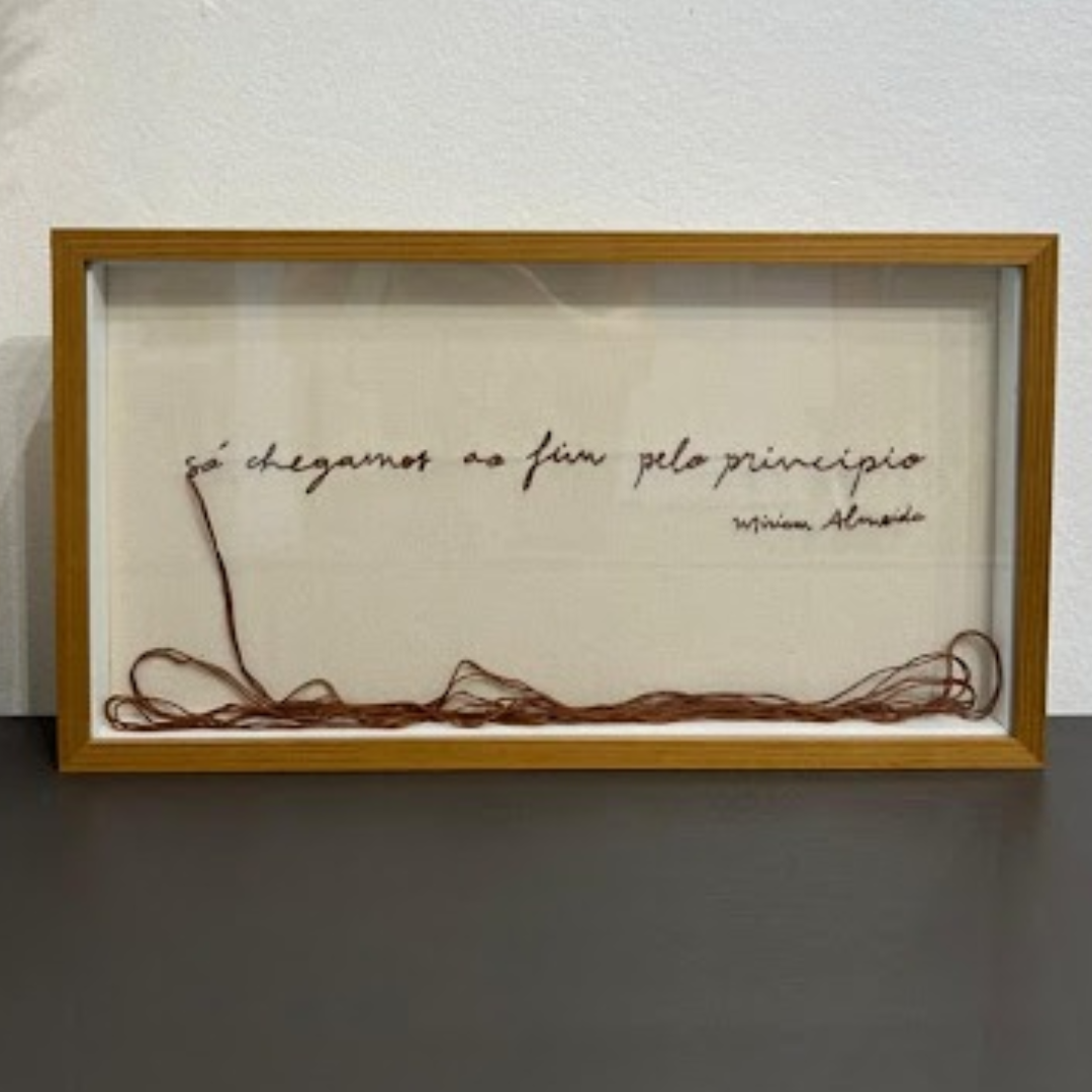 Quadro Decorativo Bordado 40x25, com moldura madeira freijó, vidro incolor e espaçador.